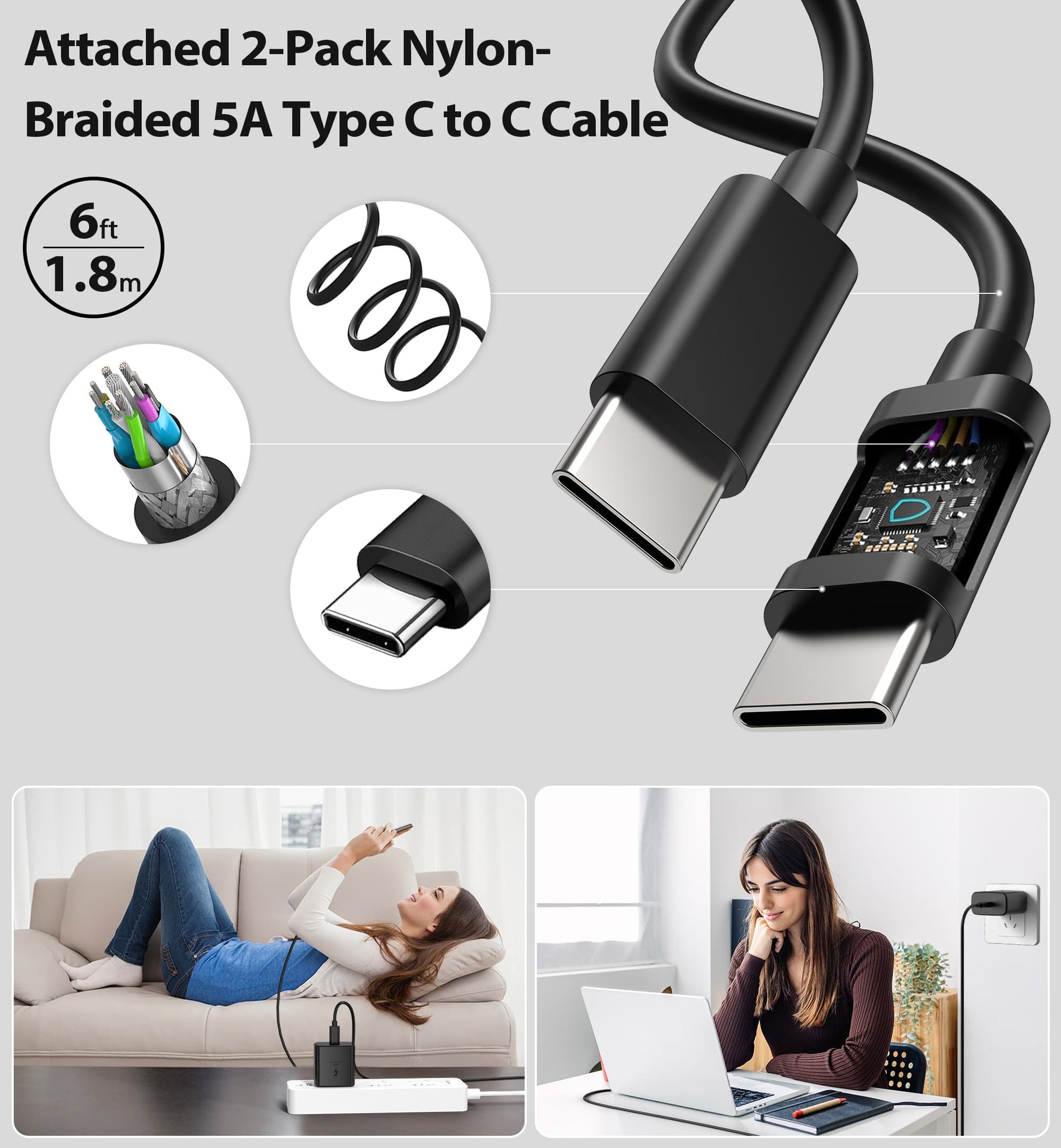 This USB-C charger is designed with built-in protection against over-voltage, over-current, overheating, short circuits, and overcharging.