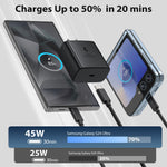 Charge like never before! With 45W USB-C power delivery and a 5A cable, this charger fully powers up your device in just 40 minutes—faster than anything from 2019 or 2021. Say goodbye to the slow speeds of older models and experience the ultimate in fast charging technology!