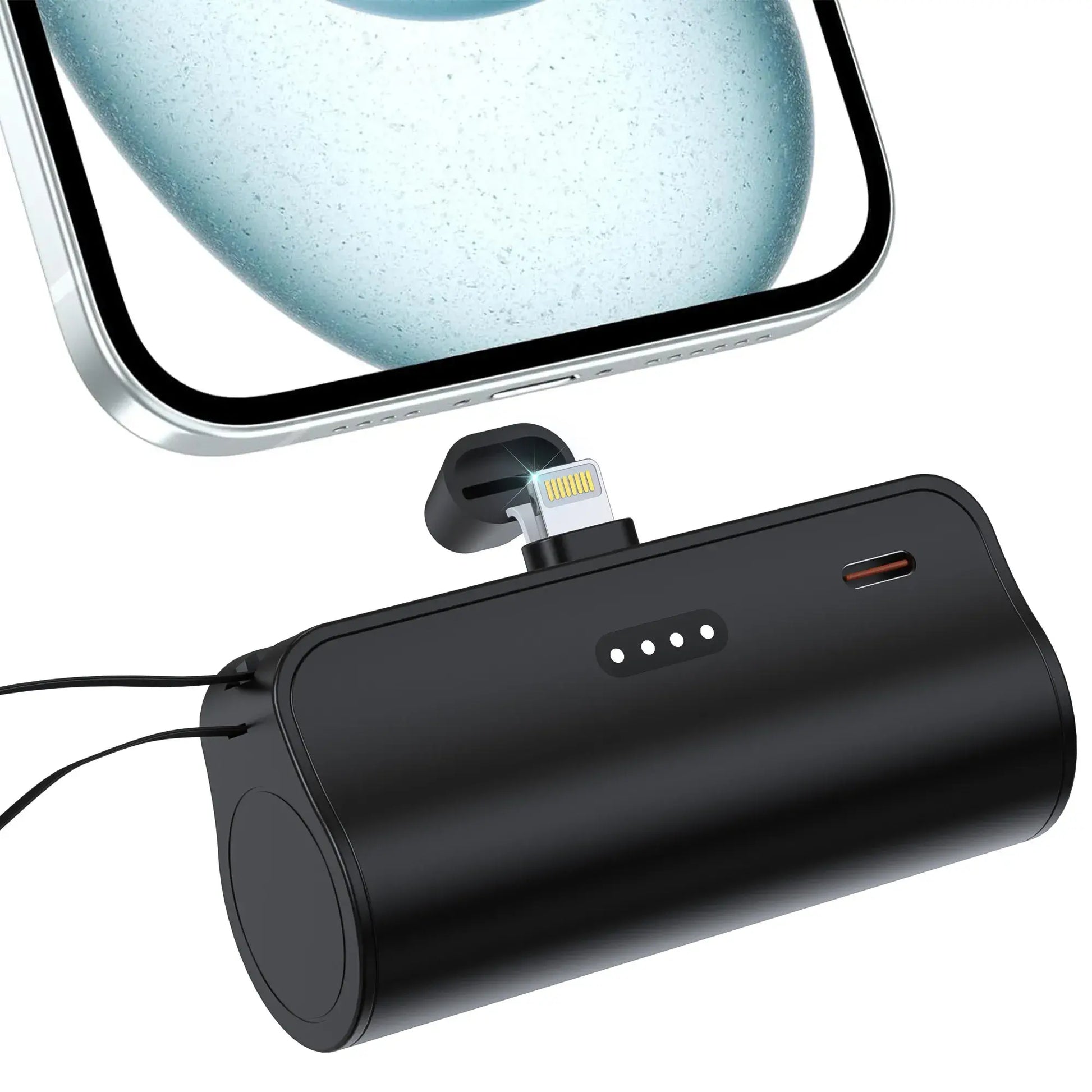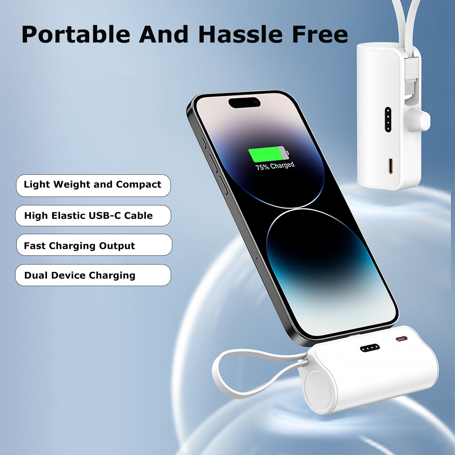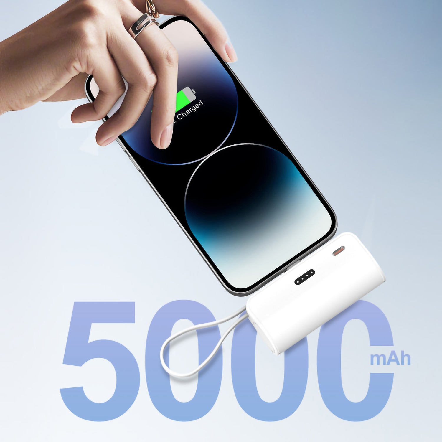 Fast Charging Mini Portable Charger 5000 mAh for IPhone, Built-in cables