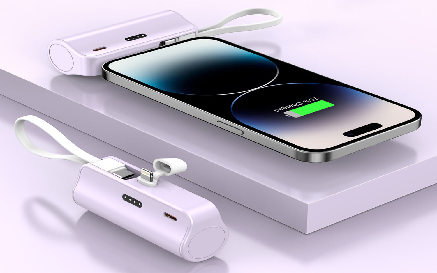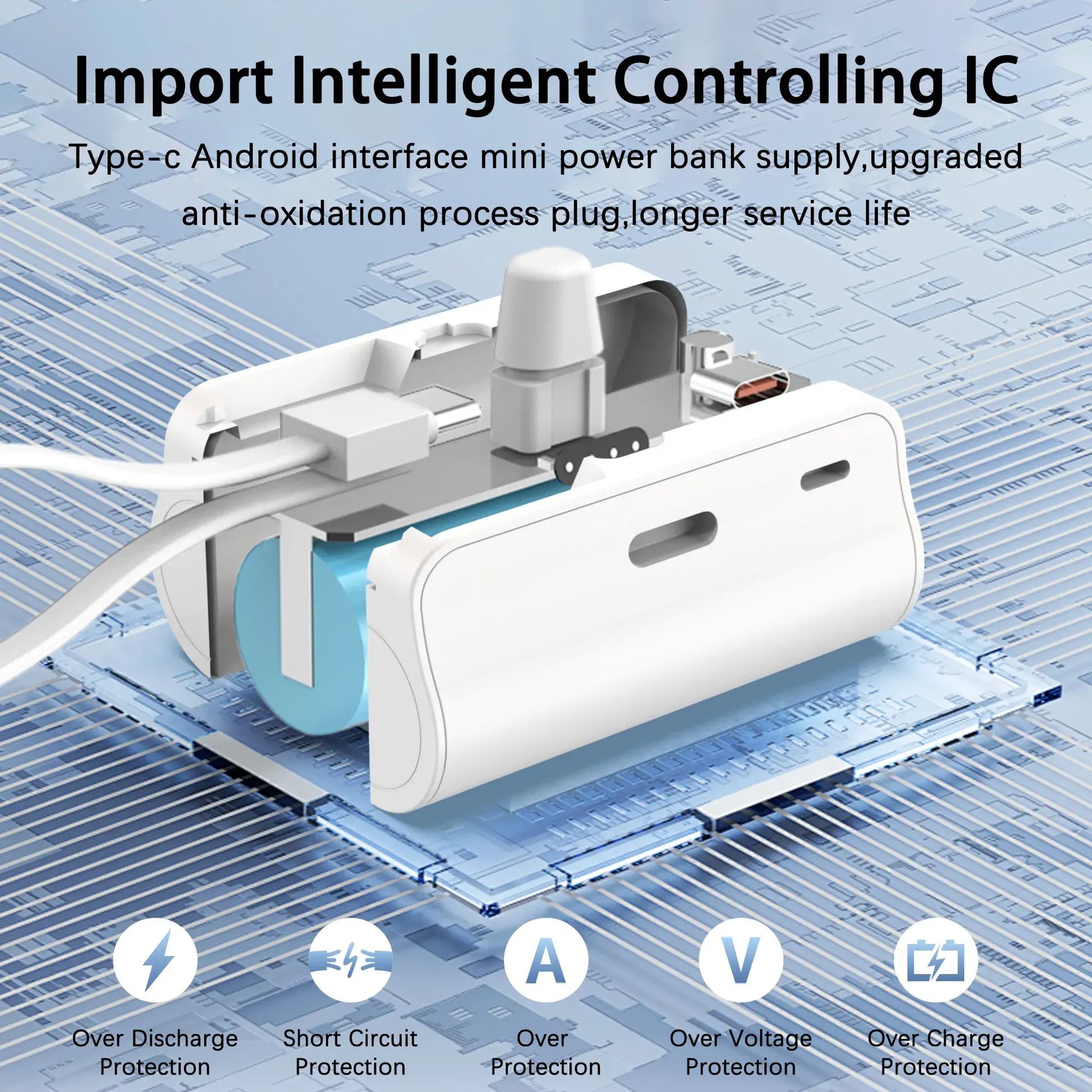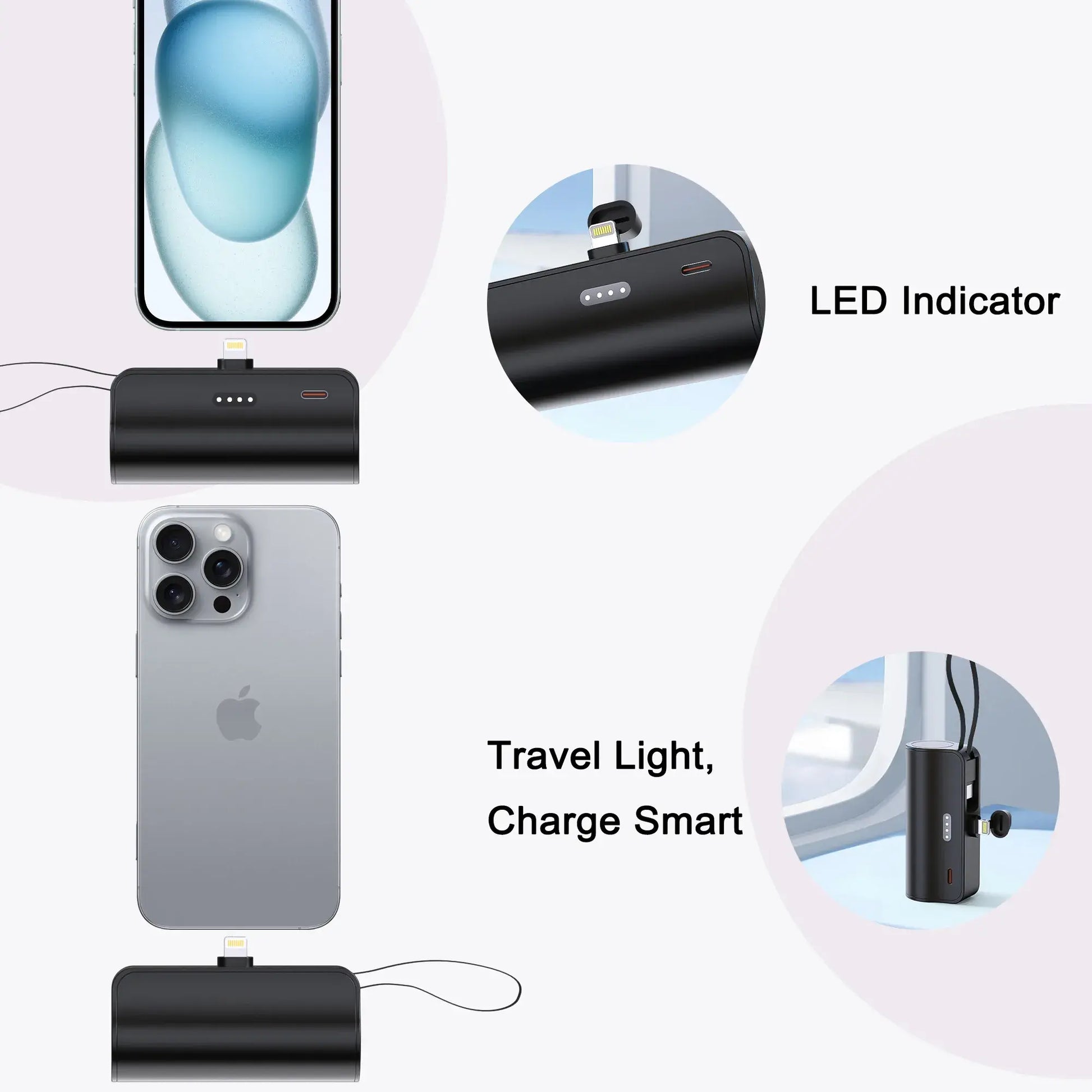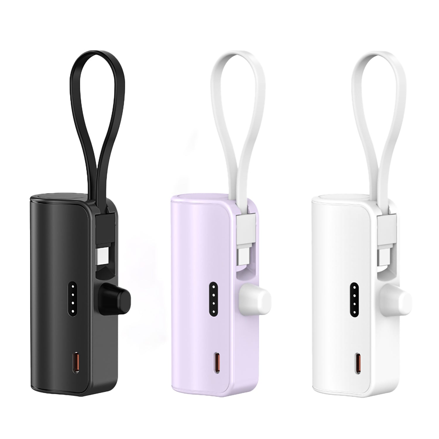 Fast Charging Mini Portable Charger 5000 mAh for IPhone, Built-in cables