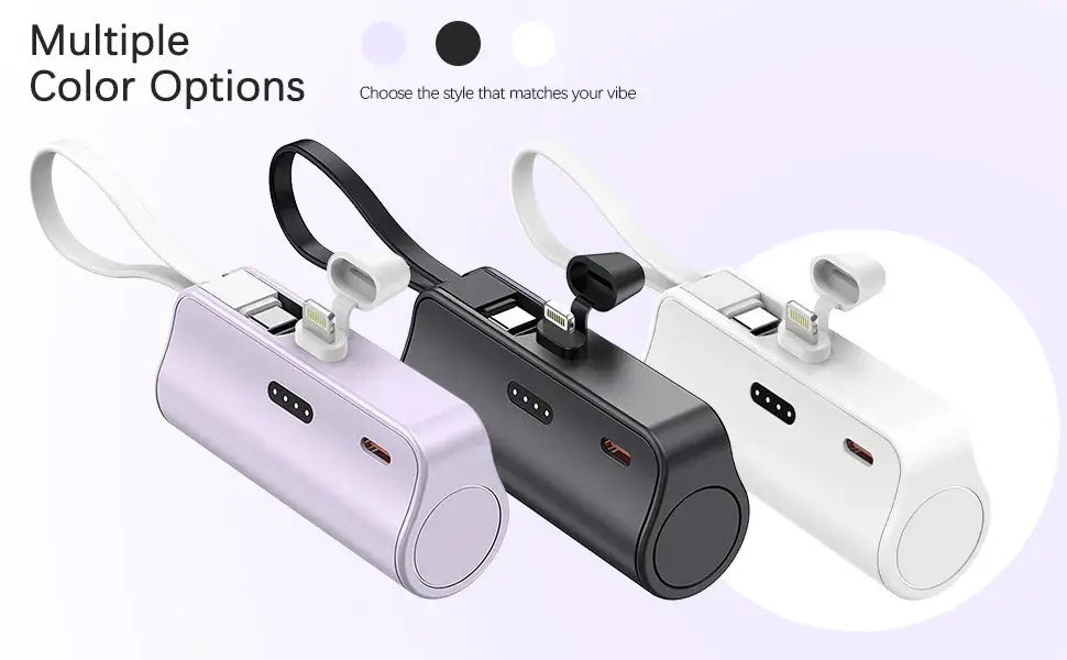 Never let a dead battery disrupt your day again! With this compact yet powerful small power bank, you’ll always have a reliable backup charge wherever you go. Designed for convenience and efficiency , this ultra-portable charger comes with built-in cables, eliminating the need to carry extra wires. Whether you're traveling, commuting, or out for the day, this stylish and lightweight charger keeps you connected effortlessly