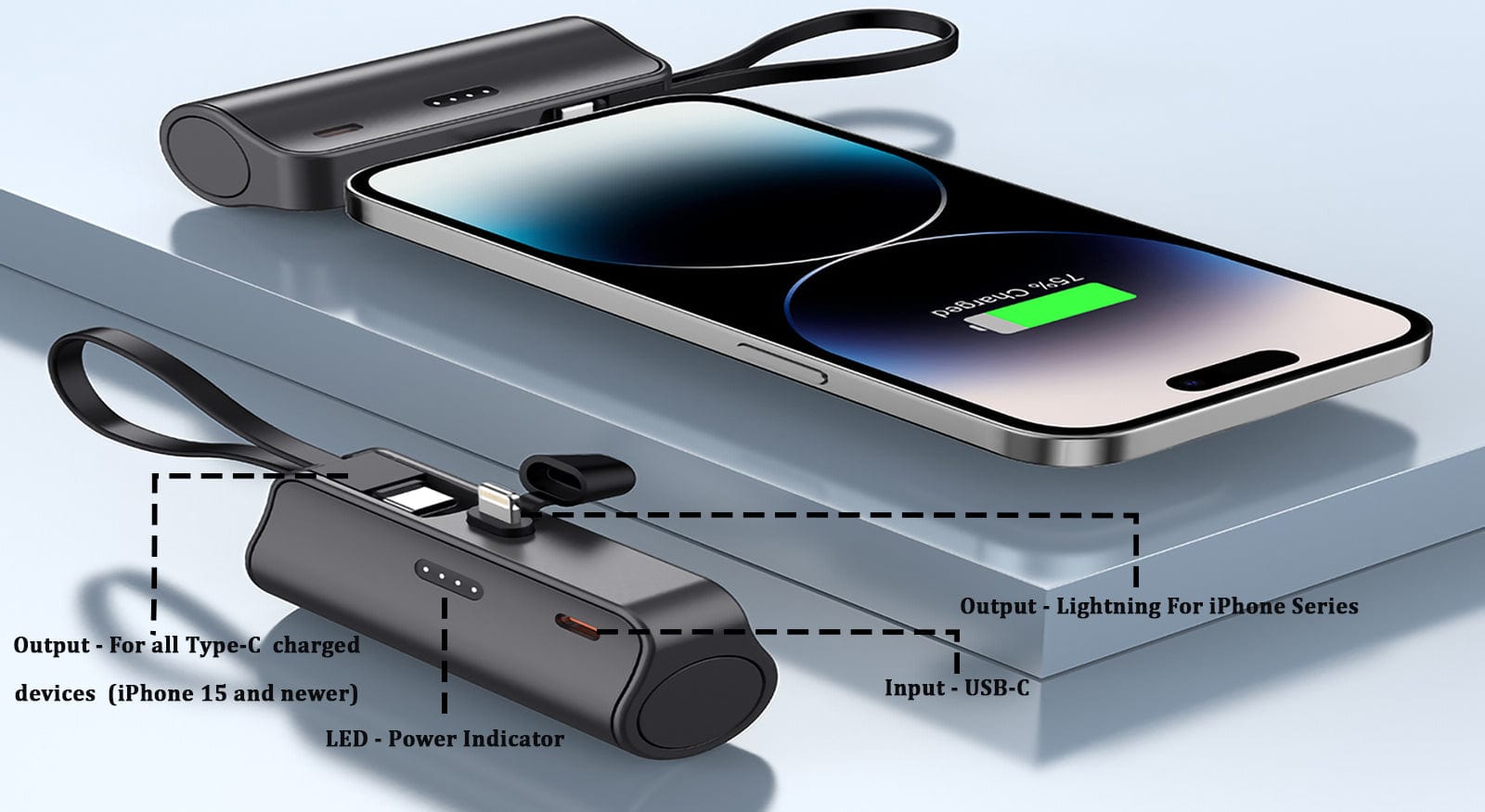 Designed for iPhone and Samsung users—as well as anyone with USB-C-compatible devices—this portable power bank is the perfect companion for busy professionals, students, travelers, and anyone who needs a reliable backup charge. Whether you’re commuting, on a business trip, exploring the outdoors, or facing an emergency, this small power bank ensures you stay connected at all times.